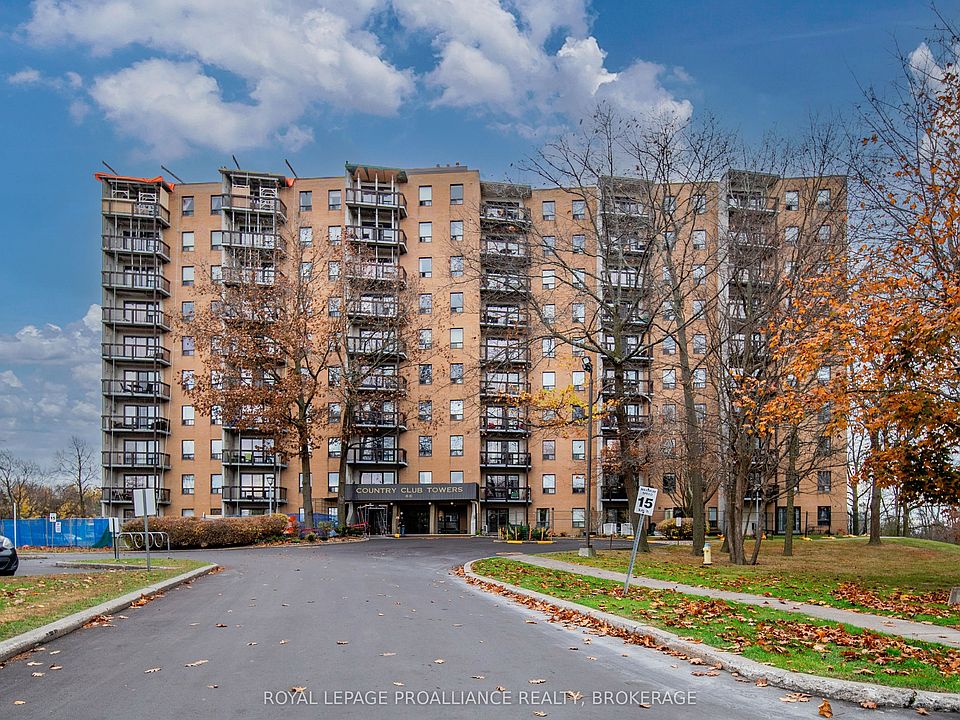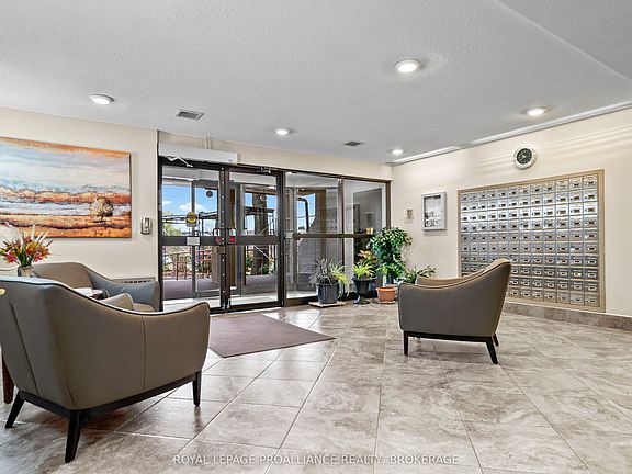 Welcome to Country Club Towers, a serene 2-bedroom, 1-bathroom condo offering 896 sq. ft. of well-designed living space. Located at the end of a quiet cul-de-sac, this home is surrounded by mature trees and green spaces, providing a peaceful setting just minutes from urban amenities. Golf enthusiasts will love being close to Cataraqui Golf & Country Club, while nature lovers can explore the nearby Cataraqui Conservation Area. Step inside to discover a freshly painted interior with stylish wallpaper, updated in 2024. The kitchen boasts a new backsplash and gleaming stainless steel appliances, making meal prep a joy. Throughout the condo, you'll find flooring that's been updated within the last decade, ensuring a modern and cohesive look. The primary bedroom offers ample space for relaxation, while the second bedroom can serve as a guest room, home office, or hobby space. Enjoy the luxury of in-suite storage and a private balcony the perfect spot for your morning coffee or evening unwinding. Country Club Towers isn't just about individual units; it's a community. Take advantage of the building's amenities, including a refreshing pool, sociable party room, well-equipped exercise facility, convenient laundry facilities, and a guest suite for visitors. Your deeded parking spot ensures hassle-free parking, with plenty of visitor spaces available for when friends drop by. The location is ideal, with restaurants, cafes, shopping, and both St. Lawrence College and Queens University nearby. Outdoor enthusiasts will appreciate the close proximity to parks and walking trails.Recent building updates, including roof work, balcony renovations, and brick repointing, demonstrate a commitment to maintaining the property's value. With low heating costs, this condo is both affordable and desirable. Don't miss the chance to call this centrally located, meticulously maintained condo your home. Experience the perfect blend of nature and urban convenience at Country Club Towers!