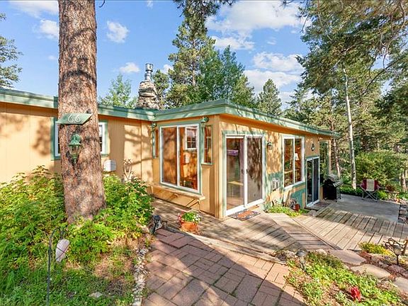 Enchanting Garden & Woodland Retreat. Set back from the main road and sheltered by towering Douglas Fir and Ponderosa Pines with the soothing sounds of Aspens in the breeze. Walk through the simple arched gate into wonderful gardens surrounding this mountain home, framed in by the forested backdrop and park like setting. Step inside the ranch style house to see and feel the care with which the owners updated and restored this charming cabin in the woods. You will find rich golden tones of pine, classic bead board and T & G throughout. The entry room, surrounded by windows and warmed by a gas stove, welcomes you into the living room and a skip troweled fireplace with a gas insert. Adjoining that is the master suite, featuring an updated bath with walk-in shower. A second bedroom faces an updated half bath. The galley kitchen has built-in cabinetry, crown molding and a pass-through to the dining room. Updated Corian countertops are accented by stainless appliances, maintenance free flooring and an embossed ceiling above. Mornings are met with sun cascading in from the bay window to the breakfast nook. The dining room features a toasty woodstove and a wall of south-facing windows providing the best vantage point to watch all the local wildlife. The home includes an attached, heated sunroom/greenhouse with skylights for year-round gardening. Exit the home through a spacious laundry room/pantry to access the separate heated studio/office and workshop. Take time to experience the 2.67 walkable acres to really get a sense of what this property has to offer.