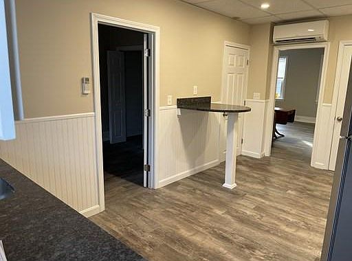 Beautiful, renovated 1 bedroom apartment on main level with private front and back entry. Enclosed front porch. Spacious, sunny living room, and new kitchen with white solid cabinetry, granite countertops, stainless appliances. Vinyl plank flooring throughout. Rent includes hot water. Energy efficient Mitsubishi ductless mini splits for BOTH heating and cooling. Off-street parking and laundry hookups in the basement. Ready for May occupancy. Photos are of a similar unit.