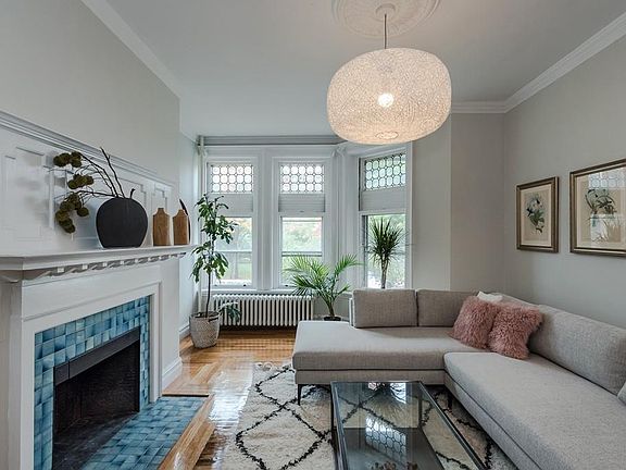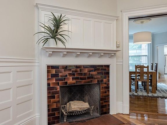 Rarefied elegance in this expansive 3,900+ sq. ft., totally renovated Tudor Revival townhouse in the historically significant Harriswood Crescent district. Unique opportunity to be among Boston influencers on Horatio Harris Park in a row of exceptional homes that are extremely rare to market. Masonry and half-timbering detail frame the entrance to the sunny main level, with a bay-window living room, formal dining room, gut-renovated granite/stainless kitchen, half-bath, and entry hall with a view up the wide, formal staircase to a massive skylight. Enormous master bedroom, second bedroom, and full bathroom on the second floor; two bedrooms and a full bathroom on the third floor; spiral staircase to attic loft space. High ceilinged walk-out basement. Distinctive and unique tiled fireplaces, and newly refinished hardwood floors throughout. Original trim and mouldings carry through the home. Steam radiators. Rear deck and side yard area. Inquire regarding possibilities for parking.