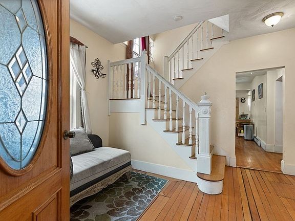 Extra large single family home features 6 bedrooms and 2 full baths. High ceilings, original intricate wood floors and fireplace mantel are just a few of the period details to appreciate. There are four bedrooms and a full bath on the second floor plus 2 more bedrooms and attic storage space on the 3rd floor. Lots of room for everyone. Gas heat, hot water and cooking, vinyl windows. Fenced yard. Property to be sold As Is.