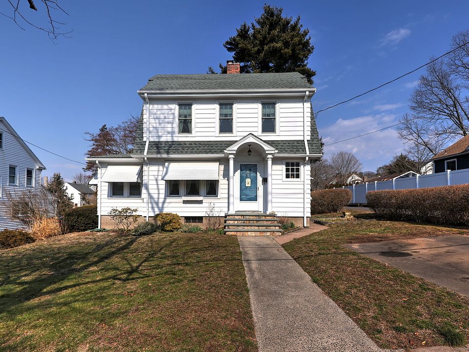 Pride in Ownership is evident throughout this stately seven room Colonial located in the heart of Morris Cove. Once inside, you'll notice the beautiful hardwood flooring and wood trim throughout this beautiful home. The sun-filled living room with brick fireplace is spacious and welcoming. Off the living room and through the french doors you'll find a den/office with lots of windows. The eat-in kitchen doesn't have a lot of cabinets or counters but plenty of possibilities within that space. A lovely dining room with all the wood trim and a three-season porch complete the main floor plan. Upstairs, there are three bedrooms and a full bath. There is also an unfinished walk-up attic. The roof is 8 years old. There are gutter guards and all awnings except one are newer. This home is on a deep level lot and has a detached garage. Enjoy Lighthouse Park, the ball fields, and all that Morris Cove offers. A convenient commute to New Haven colleges and schools, train station, hospitals, Coast Guard Station, and Tweed New Haven Airport as well as nearby Shoreline Communities. Sold As Is. The private road to the right runs across the back of the houses on Kneeland Rd. and Townsend Ave. between Hervey St. and Raynham Rd. The house was originally oil heat but converted to gas. The oil tank is in the basement. Seller has never used the fireplace.