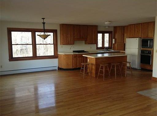 Beautiful raised ranch on an open acre in the woods of Conway, dead end private road, with easy access to Amherst, (12mi), Northampton, (14 mi), Greenfield, (10 mi). Located 3 miles from I91 Exit 24/25. Open architecture LR, DR, Kitchen, large master bedroom and bathroom, all on upper floor. Lower floor with two additional BR, full bath/laundry, and large family room or guest room opening onto back yard. Pets allowed on a case by case basis. Month to month lease with first and last month rent, security deposit. Tenant to pay Realtor's fee of $400.