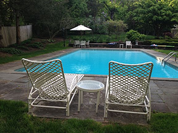 Gorgeous stone English country home sitting on over an acre of beautifully landscaped grounds. All the old world charm with fresh updates for today's living. Winter views of Hartford. Serene setting with in-ground heated pool, separate stone and slate storage house, backyard views of woods and large stone patio for entertaining. Nearby access to reservoirs for hiking, biking and cross country skiing. Cook's modern kitchen with island and separate bow-windowed skylit table eating space opens to huge family room, that was added as part of major renovation. Kitchen equipped with 8 gas burners, 2 sinks, 2 dishwashers, 2 ovens, 2 warming drawers, deep, built-in marble pastry surface, microwave, extra refrigerator ( under island), custom copper hood, and generous prep space. Family room sports vaulted ceiling, stone fireplace, half-refrigerator, wet bar and space for large pool table. Sun-filled living room with adjacent library/office with wet bar. Formal dining room with one of 4 fireplaces. Master bedroom with tray ceiling and marble bath, Four more bedrooms (one set up as an exercise room), 4 1/2 additional baths plus an upstairs TV/computer room. Exterior and most of interior painted in 2015. Up to date gas furnace, hot water heater, slate roof. Five heating zones and 5 AC zones. Oversized two car garage with additional storage.