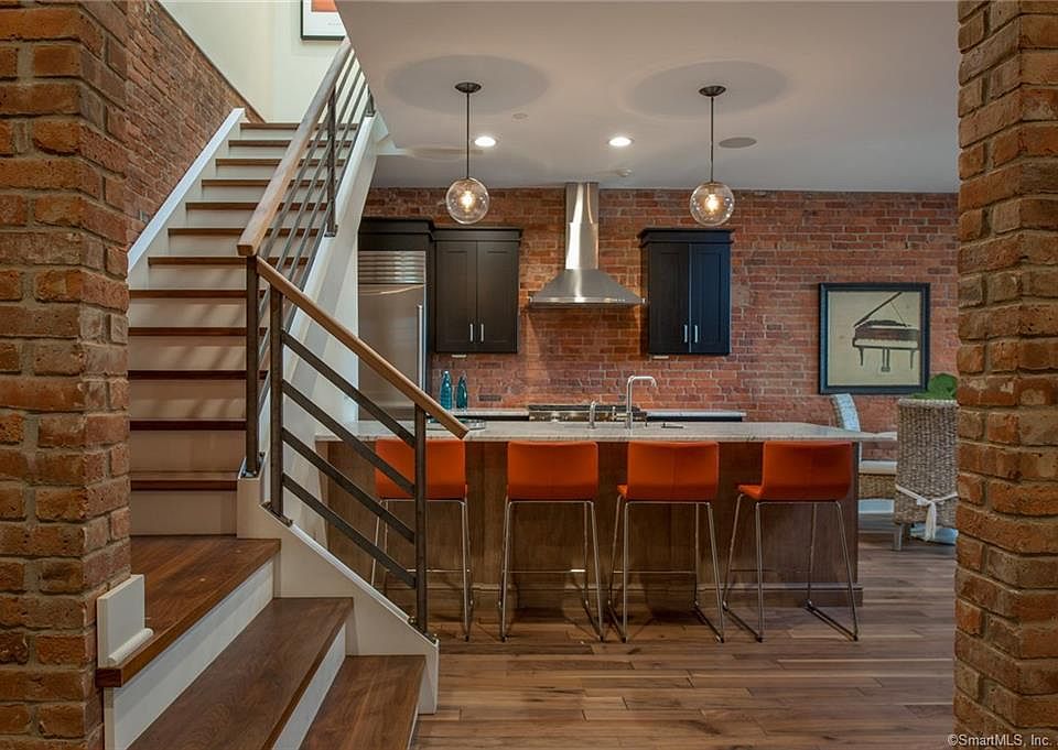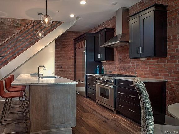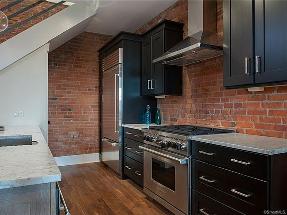 Upscale new construction in the heart of Guilford within walking distance to the Historic Town Green, shops, restaurants, train station, marina and beach. This townhouse style unit is located in the Historic Mill building with beautiful antique brick walls and views of the courtyard designed by award winning landscape architects. One bedroom is location on the first floor and the master bedroom site is located upstairs with a large private Ipe wood deck off of the master bedroom overlooking the courtyard. Quality construction materials are used throughout including Marvin Integrity windows, Hardie board siding, premium appliances (Wolf, Sub-zero & Asko), hardwood floors, heated bathroom floors, LED lighting, state of the art HVAC, security system with camera, wired for sound and smart home technology, city water, natural gas heat and fireplace with finish selections from our interior design staff. Available late summer occupancy.