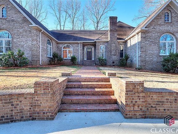 Nestled in the prestigious Highlands subdivision, this stunning brick home offers luxury living on a 7.03 +/- acres private estate located in the city limits of Jefferson. Designed for both elegance and comfort, this home features two master suites, including one with a spa-like soaking tub and custom tile work for a true retreat. The gourmet kitchen is a chef's delight, complete with quartz countertops, a large island that can be used for meal prepping or dining, stainless steel appliances, a large butler pantry with small appliance countertop space, custom cabinetry that extends to the ceiling with soft close hinges, and a pot filler above the oven. The spacious living areas provide the perfect setting for entertaining, while the beautiful office, complete with built-in shelving and a cozy fireplace, offers a sophisticated workspace. A second fireplace adds warmth and charm to the main living space. This exceptional home also includes a detached four-car garage/workshop, walk-in closets throughout, and an expansive laundry room. This home offers the perfect blend of luxury and tranquility while still being conveniently located near top-rated schools, shopping, and dining.