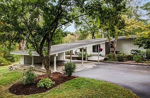 Seeking sanctuary? Feast your eyes upon this mid-century modern beauty where sun streams through floor-to-ceiling windows & Elizabeth Brook borders the northern edge of the 1+ acres. Soaring ceilings, handsome hardwood floors & an open concept design are the hallmark of this exquisite home boasting many recent improvements including tastefully updated baths, 2008 roof, stainless chimney liner, 2017 hot water & 2018 heat and central AC. White cabinet eat-in kitchen with 2018 stainless steel appliances & granite counters flow into a fireplaced family room. The finished lower level boasts 2 large bonus rooms, an economical wood stove & a huge workshop area ideally suited for projects. Truly an outdoor lover's dream: Imagine entertaining friends on the deck & patios, tending a raised bed garden, enjoying kayaking or winter skating on your own spring fed pond, a game of touch football in the sprawling yard or roasting marshmallows over the firepit at water's edge. Paradise awaits!