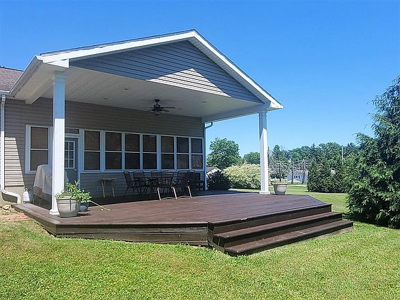 Country setting close to town. Beautiful inside and outside! This 3 bedroom, 2 bath, spacious ranch home has everything you are looking for in single story living. Full basement with high ceiling ~ nice big laundry room ~ central air ~ fantastic 2 story 20x24 barn ~ huge covered deck overlooking level 2 acres.