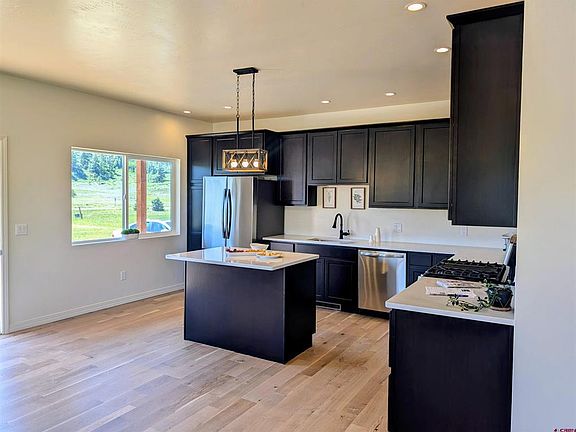Reduced to only $589K New custom home on 3 lots ( almost 1 acre) Single level home features 3 bedrooms, 2 baths, large laundry/mud room, many custom features such as real wood flooring, custom tile, open floor plan kitchen, granite counters, modern light fixtures, hardware, faucets etc.. dining and living room with large windows to take in the beautiful Mountain views, on the south side of the home is a large covered patio for friends and family gatherings plus a covered front porch to enjoy the views with your morning coffee or the spectacular evening sunsets. Plenty of guest parking and an oversized single car garage. There is plenty of lot space to build a huge shop/garage/fitness studio etc.. Near Lake Hatcher, National forest, park/playground. Just 6 miles to shopping, dining, medical facilities, sport courts, recreation center, more fishing lakes, golf course and only 3 more miles to down town where you will find the Worlds deepest Hot Springs along the San Juan River for fantastic fishing rafting/kayaking/tubing etc.., unique shopping, galleries, dining, hiking/biking trails, seasonal concerts, marathons, parades, car shows, food trucks, farmers market and much much more