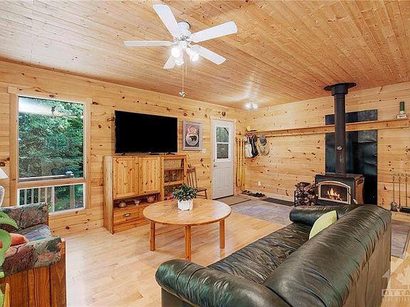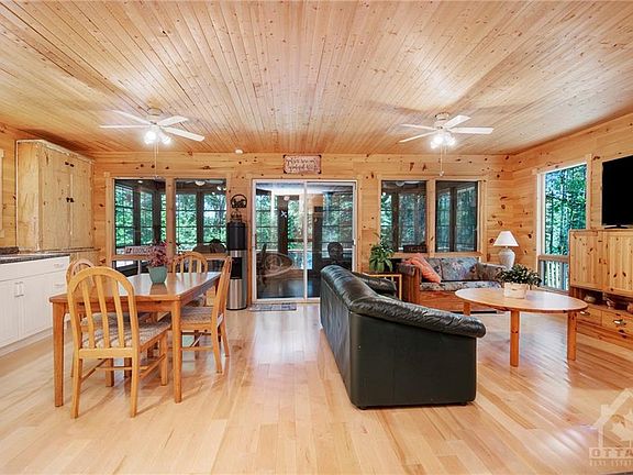 This ready to move in furnished cottage retreat is located in the beautiful Bonnechere Valley, 1.5 hours from Ottawa, 1.5 hours from Ontario's famous Algonquin Park or 3.5 hours from Toronto. This amazing cottage retreat is nestled on 3 private wooded acres, on a no-motor boat, clean and quiet lake. Comfortably sleeps 8. The main cottage features 2 bedrooms, open concept kitchen/living room, cozy wood-burning stove and an incredible sunroom with views of the lake (also a 2nd dining area). A large deck adjoins the spacious stand-alone master bedroom, featuring its own 3-piece en-suite. Another Bunkie (separate dwelling) has its own covered deck. A large fire pit with ample seating, create a perfect tranquil evening by the lake. Relax by the water. Dive/swim off the main dock, or swim out to the floating dock or enjoy a paddle. Highspeed Internet is available on the property. Clear Lake Marina only a 12 minute drive from the property.