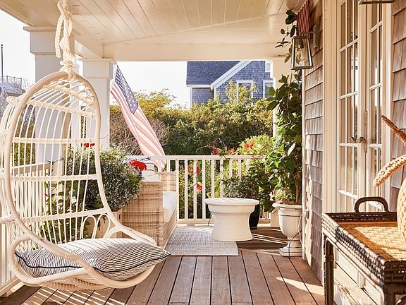 RATE IS WEEKLY "Halcyon" is the south house at 66 Hulbert Ave and has parking and its front door located off Walsh Street Extension. This house is a 4-bedroom, 3-bathroom Lyman Perry-designed three-floor, modern interiors Upside-Down House with white airy WOW factor throughout; furnished verandas overlooking gardens designed by The Sconset Gardener; a large wrap-around second-floor dining deck facing west, and an easy-access Roof Walk with a stunning 180-degree water views from Dionis to the Town's inner harbor. There is a King primary suite on the second floor as well as a Queen primary suite on the first floor with a harbor view. House has Luxury mattresses, Matouk & Frette linens, and Serena & Lily Turkish towels. In addition to the 4 bedrooms, there is a 3rd-floor bridge/loft for an extra 2 guests or workspace and has a PELOTON: 3 full baths plus custom outdoor shower on the veranda just off the bedrooms. Sleeps 8-10. Central A/C. All new appliances. Outdoor shower.