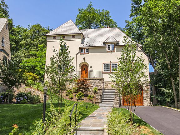 Meticulously renovated Tudor on quiet,tree-lined street in Historic District of NR.High-end finishes and materials through-out!Tumbled Calcutta marble entryway opens to large,sunny DR & oversized LR w/granite fireplace surround & built-in custom cabinetry w/ new red oak hardwood floors & LED recessed lighting w/ tree top views through the updated windows. New kitchen offers Bertazoni appliances,custom cabinetry, artisan ceramic tiles W/SS farmhouse sink and newly renovated powder rm. Renovated stairs lead to Master BR suite w/LED lighting, new master bath w/Carrera marble heated floors, Toto Neorest Washlet & custom walk-in closet. 2 BRs w/ custom closets. Hall Bath W/marble floors & subway tiles & double sinks. 3rd fl BR w/full bath & storage. New copper plumbing, updated electric, new Weil McLain water heater & boiler,new custom red oak front door & garage. Roof recently maintained w/new copper gutters, valleys, cricket and soffits.Too many upgrades to mention!!