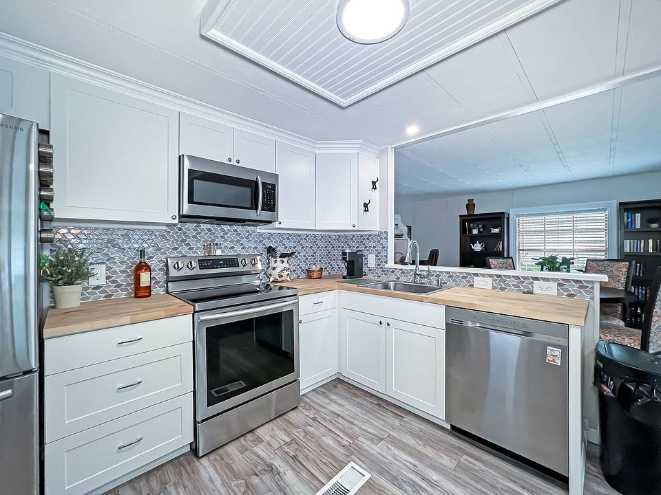 Located in Beautiful Jamaica Bay, this home is all you need to start living the Florida Life style. Kitchen comes with all NEW stainless-steel appliances such as the oven/ range, fridge, dishwasher, garbage disposal and microwave. The OPEN CONCEPT kitchen overlooks the living room and dining room area. Window to window offers plenty of bright sunshine to enjoy in any room of this very spacious home. Gorgeous high ceilings with lots of recessed lighting give that extra umph it doesn't even need. Other features included are walk-in closets, En-Suite bathrooms, smoke alarms, built-in cabinets and ceiling fans. Stunning vinyl flooring allow for the home to have a modern look. Outside offers a spectacular view, surrounded by gorgeous trees and landscaping, that are being well maintained. You can enjoy it all in the screened in open spaced porch, for those who love outdoor weather. Washer/ dryer set are included in its very accommodating shed that gives lots of extra storage space. With plenty of parking and a carport for your vehicle's needs, what else do you need? Do not miss out on this amazing opportunity! Jamaica Bay is a gated community of manufactured homes in south Fort Myers designed for age-restricted residents who want to enjoy a fun and active lifestyle. Amenities include: 24-hour staffed gatehouse, (3) clubhouses with verandas, poker room, craft room, (2) heated pools, whirlpool spa, fitness center, locker room with saunas, (12) shuffleboard courts, (3) bocce ball courts, (4) tennis courts, (2) pickle-ball courts, putting green, (2) horseshoe pits, (4) billiard tables, pub tables, library with wireless internet, (3) stocked lakes, BBQ & picnic areas, and planned community activities. Do not miss out on this stunning Florida home - Come play at Jamaica Bay!