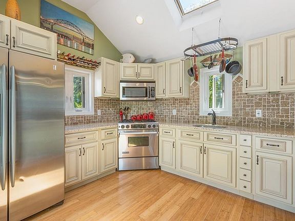 - Kit Dscrp: Flooring - Hardwood, Skylight, Breakfast Bar / Nook, Stainless Steel Appliances, French Doors, Recessed Lighting, Countertops - Upgraded, Remodeled, Lighting - Pendant, Ceiling - Vaulted
