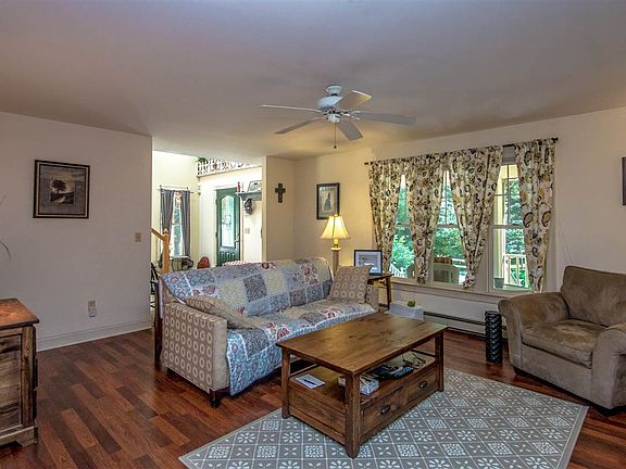 Wonderful private setting close to Mt. Cranmore, hiking & cross country trails. 4 BD, 4 BA custom home with excellent living space, beautiful Farmer's porch. The main level leads out to terrific patio area with outdoor kitchen & dining set up. The property is beautifully landscaped with backyard tree house & your own zip line & hot tub and 20K standby generator. Oversized 2 car garage with storage & work area. This property could be perfect for you and your family.