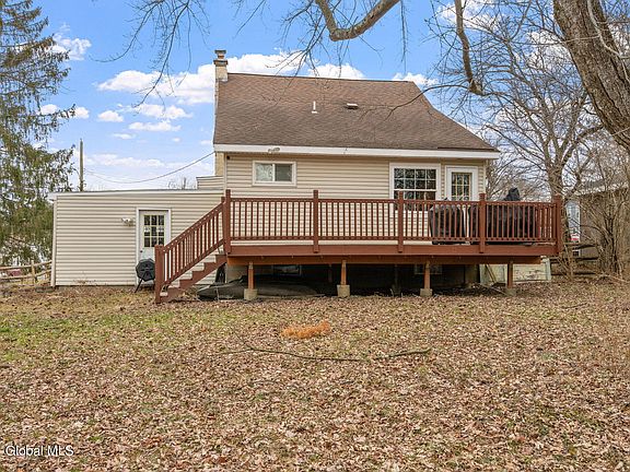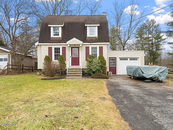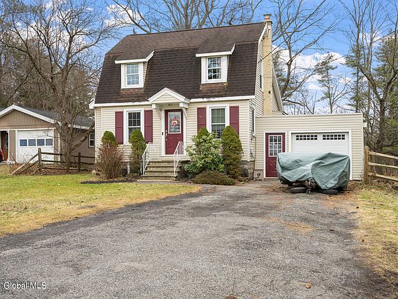 This Colonie remodeled Dutch Colonial sits on nearly an acre, offering 3 beds, 2 baths, and a first-floor master suite. Inside, refinished hardwood floors lead to a sleek kitchen with maple cabinets and stainless steel appliances, perfect for entertaining in the adjacent formal dining room. Enjoy the cozy great room with views of the landscaped yard and newer deck. Upgrades include a newer roof, windows, and remodeled baths. With a walkout basement and oversized garage, this home combines modern comfort with timeless charm, ready to welcome you home. 3D tour attached.