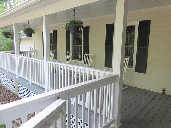 Peaceful setting on 1.5 acres backing up to a large tract of land. Wide front rocking porch to enjoy the outdoors. Huge kitchen with island, granite counter tops, beautiful back-splash and under cabinet lights. Four bedrooms and 2.5 baths. Hardwood flooring in dining room. Great room with handsome fireplace. Large deck overlooking newly installed sod. Backyard with sprinkler system. Detached workshop with power. Carport could be easily converted to a garage. Nice size laundry. Nest thermostat! Plenty of parking space for cars/trucks/RV's and all your other toys. Security system with 3 cameras. In the country but close to everything. Several ponds in neighborhood where you can fish. Wireless access in house with network cabling. Trampoline and play-ground remain with property. Two water heaters less than one year old. Low, low electric bills! 1 year home warranty offered/ Pond access