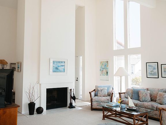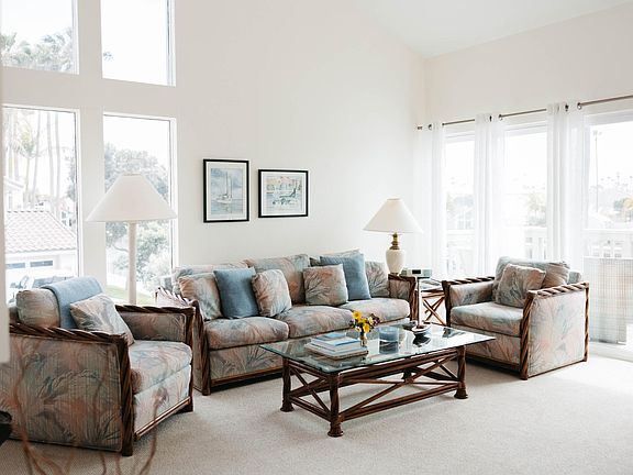 Fantastic location: 2nd story end unit on a west-facing channel featuring vaulted ceilings and a walk-out patio off of the living room. This Condo is extra bright due to the side windows in addition to the soaring ceilings. There are 2 bedrooms plus a den, highlighting a Murphy bed for additional guests. The kitchen is equipped with stainless steel appliances for the domestically inclined and a separate area for informal meals. Enjoy the clubhouse with a pool and Jacuzzi. Within walking distance from this home is Coronado Cays Park, tennis and pickleball courts and a basketball court, Silver Strand State Beach, and Loews Hotel. Use of 32' dock included, so bring your boat and water toys and have a fantastic vacation!