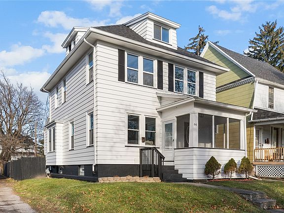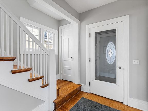 Don't walk, RUN! NO DELAYED NEGOTIATIONS! FANCY & functional 1900sqft+, 4 Bedroom, 1.1 Bath home w asphalt driveway & 2 car detached garage- OFF STREET PARKING perfect for upcoming snowy weather! FULLY FENCED YARD, screened front porch acts as winter mudroom space! Enter through Original GLASS door- a portal & preview into all the old world charm this home offers! Welcoming Foyer w oak hardwoods (throughout main level), fresh paint, new black fixtures! Spacious Living room opens to FORMAL DINING RM w window bench, glass built in shelving, large pantry for all your storage needs! Handy half bath w original SWINGING DOOR! EXPANSIVE EAT IN KITCHEN to impress your holiday guests boasts QUARTZ counters, NEW classy white cabinets, white & bright mosaic tile accent band, Stainless appliances, LVP flooring holds up to high traffic! DOUBLE SIDED STAIR to large second floor landing, refinished original PINE FLOORING throughout! FOUR BEDROOMS complete w fresh paint, roomy closets, flush mount light fixtures! BONUS SQ FT in PARTIALLY FINISHED ATTIC! Basement houses gas furnace & HW tank, Laundry w PEX plumbing, new 100AMP box! This one has it ALL & SO MUCH MORE- make it yours today!