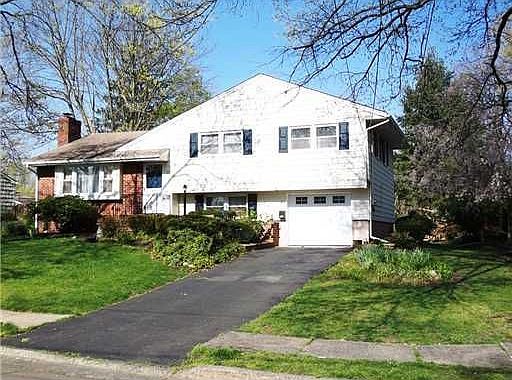 Impecably maintained Split with hardwood floors throughout, with updated expanded kitchen to open sitting room with Anderson sliders to large deck w/hot tub all overlooking beautiful yard. Living room with recessed lights and wood burning fireplace. Partially finished basement is just an added plus.