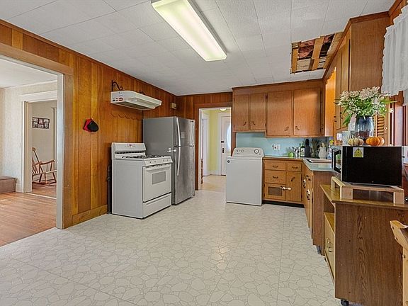 Eat-in kitchenHardwood floorsUnfinished basementBuilt-in cabinet