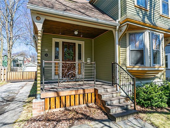 LINDEN-SOUTH HISTORIC DISTRICT SHOWSTOPPER!!!! This Southwedge Victorian Painted Lady is truly something SPECIAL! Before you even step inside, take a moment to appreciate the newer front porch with trex decking and CUSTOM artistic railings- Just picture yourself relaxing here in a rocking chair on a summer night! Comfortable foyer/entryway with Double glass doors, leading you to a LARGE living area with shelving and built-ins. Additional sitting area with Bay window and cushioned seat- the most amazing spot to curl up with a book in the afternoon sun! Or, create a cozy space for conversation with friends and loved ones. Adorable dining area with French Door to the FULLY FENCED Backyard! Convenient newer half bath (2020) off of the dining area. Cabinet filled Kitchen with exposed brick, beadboard and Newer stainless steel appliances including a brand NEW induction oven! Three bedrooms upstairs and UPDATED Full Bathroom (2020) with skylight, DOUBLE vanity, HEATED floors and FULLY TILED STEAM SHOWER!!! Cold mornings just got a lot more comfortable! Sizable hallway closet for additional storage. DRY basement and newer washer and dryer included! One car detached garage, great for parking, storage or work area! Well cared for Backyard with Newer fence and custom gate (2022), Newer basement walkout doors and exterior walkout brick rebuild (2023), rebuilt retaining wall at the back of the yard (2023) and raised garden bed to plant your favorites!! A PRIVATE OASIS in the center of the city! Sidewalk lined street- Close to Highland Park, the Genesee River Trail, restaurants, hospitals, 490 and local events!!! Other features include: NEW Furnace and AC (2023), newer ceiling fans and greenlight internet. Square footage from appraisal measurements is 1524 sqft. Delayed negotiations on file, Showings begin Thursday April 3rd at 9am. Offers due Tuesday April 8 at 2pm.