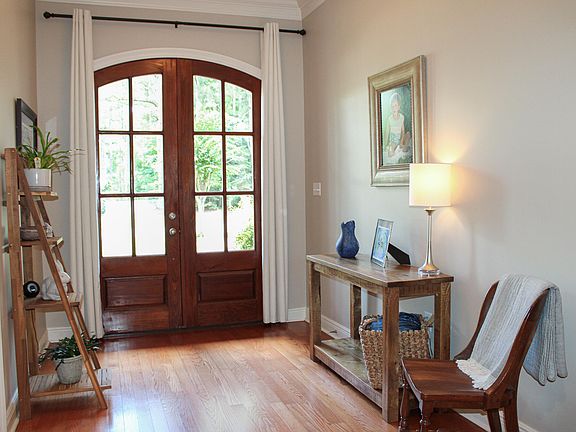 - Description: Entrance via arched double French doors; opens to great room