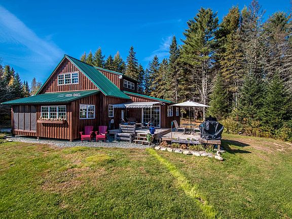 Your fully furnished dream home in northern NH is sited on 8.39 surveyed acres with paths traversing the property and easy snowmobile trail access. The spectacular mountain view can be enjoyed from the 12' x 24' deck, the screened-in porch and from most rooms in the home. The side entry leads to the Great Room. It's open to the kitchen which boasts hickory cabinetry, granite counters, and stainless steel appliances. On the first floor, there's a cozy dining nook with built in seating, that can easily convert to an additional sleep quarters. A 3/4 bath includes a stackable laundry center and the bedroom includes a private full bath. There's also a living room that leads to the deck through glass doors. Relax and enjoy the sound of the small waterfall. The 2nd floor offers another spacious bedroom with terrific views. Throughout the home, you will enjoy the easy care wide plank hickory flooring and ceramic tile in the 2 bathrooms. The walls are gleaming with natural pine shiplap. A 10' x 20' insulated shed has a wood stove and is currently used as a workshop and storage area. However, you could easily convert it to a bunkhouse! This property is meticulously kept and ready to be your full time home or vacation get-a-away!