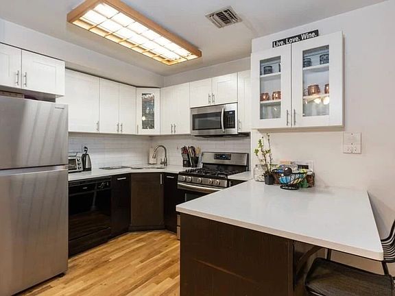 Welcome to 66 Madison Street Residence 3! This 4 bedroom 2 bath abode features an ideal winged layout, offering 2 bedrooms and 1 bath on either side of the spacious living and dining area. The newly renovated kitchen boasts shaker cabinetry, modern hardware, full size appliances including a dishwasher, a classic subway tile backsplash, a chic white stone countertop and lovely breakfast bar. Hardwood floors run throughout this oversized apartment. In unit laundry machines provide for added convenience. Further, this home includes a deeded parking space in the building's garage. Located in close proximity to the PATH train, a short commute to Manhattan and situated among the esteemed dining and shopping establishments of the fabulous Hoboken locale, 66 Madison Street #3 offers an undeniably wonderful place to call home!