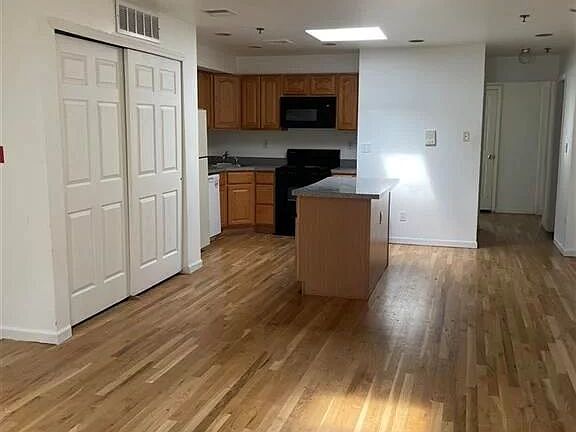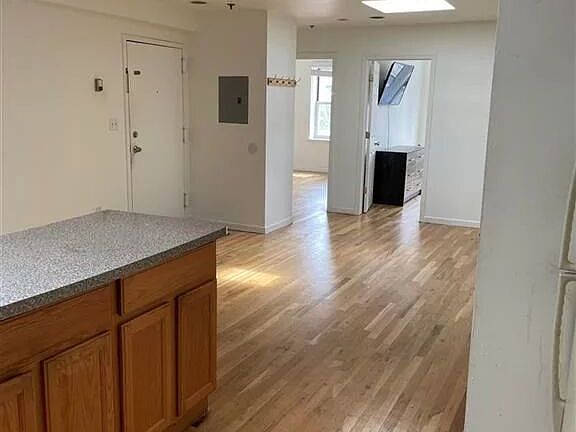 Rare opportunity! Spacious, 1336 sqft, 4br 2ba apartment for rent in Hoboken. Sun drenched top floor with 2 skylights, hardwood floors, open concept kitchen, in unit laundry, central AC, large bedrooms, shared backyard and 1 tandem garage parking spot included. This apartment is perfect for roommates and has easy access to Hoboken PATH. Available May 1st.