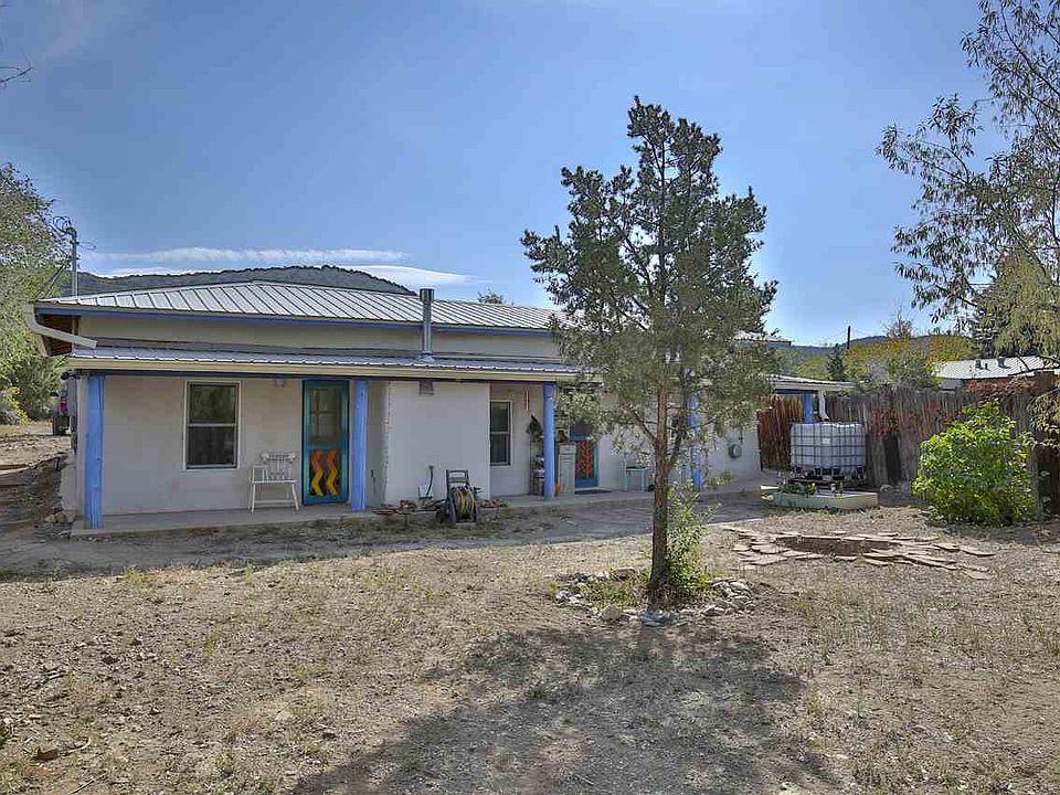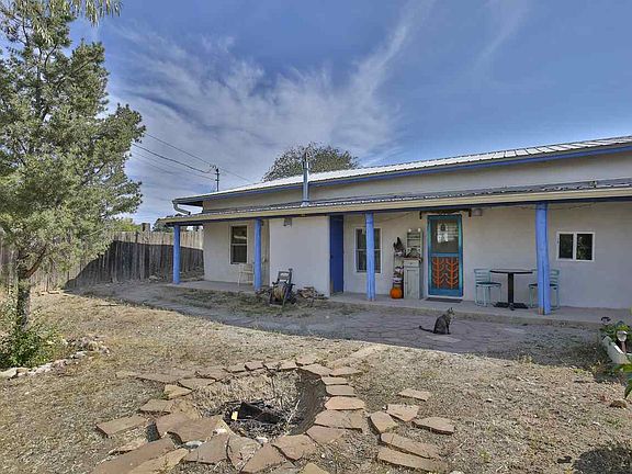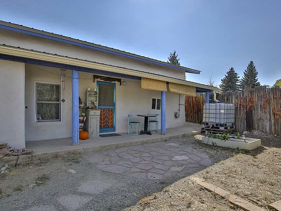 An delightful, sweet, classic - an old Adobe circa 1920, that has it all - a metal roof, new stucco and windows, fruit trees, room to garden, in-floor radiant heat, gas powered heat, a full bath, a storage shed and a bonus camper (with no value). This two bed, 1 bath 759 sq foot beauty, comes with vigas and plank and coved plaster ceilings, saltillo tile and oodles of charm. The old apricot is big enough for shade and will help you keep your visiting friends happy. On community water and El Valle sewer and with two water catchment cisterns - so you can nurture your oasis to your heart's content. Some lovely touches to look for - artistic doors and custom cabinets with a narrative history of the home on the inside door of the cabinet in the larger bedroom. Used as a two bedroom now, could easily be a 1 bed with a larger living room. Connected to KC fiber optic broadband and comes with stacking washer/dryer.