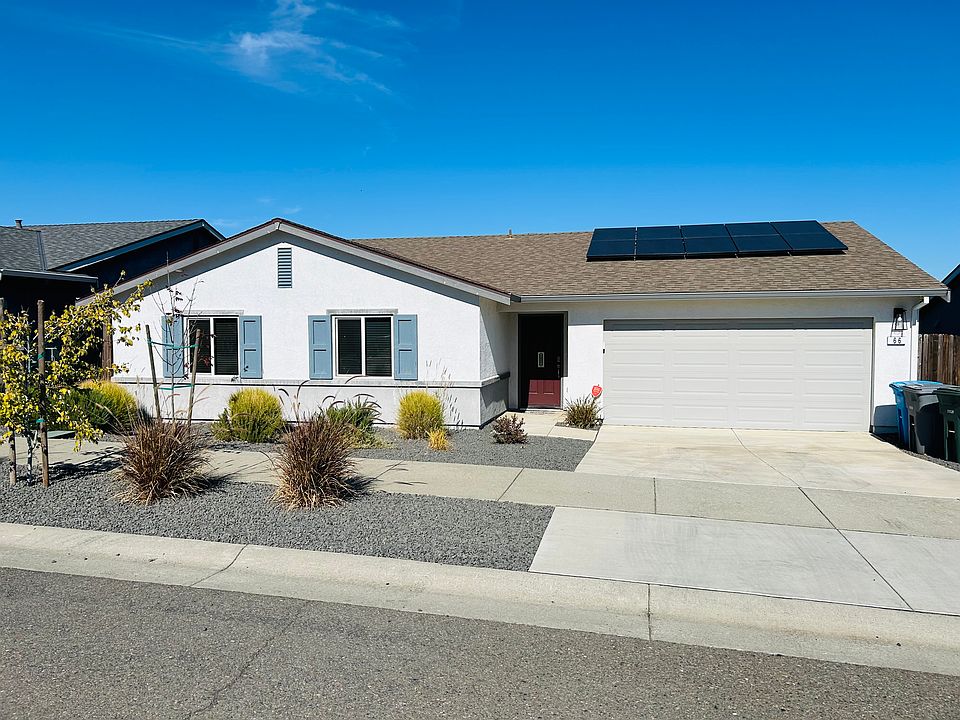 Spacious 3 bedroom 2 bath with solar and attached 2 car garage located in a beautiful neighborhood. 2020 new build home with an open floor plan. Granite countertops and island in kitchen, vinyl wood floors, fully fenced big backyard, stainless steel appliances, dishwasher, fridge/freezer with water/ice dispenser, brand new washer and dryer included and was just painted. Master bedroom is very spacious with walk in closet and master bath has a double vanity with 2 sinks. OWNED SOLAR to greatly lower electricity costs. OWNER PAYS WATER, SEWER, TRASH, & PEST CONTROL. Small dog allowed with non refundable pet deposit. Book a tour today or feel free to call or text anytime with your questions. 1 year lease. Renters insurance required. Owner pays for water, trash, sewer, and pest control. Renter pays for PGE.
