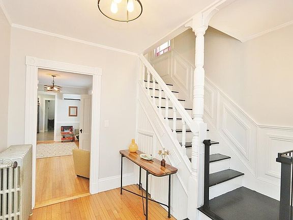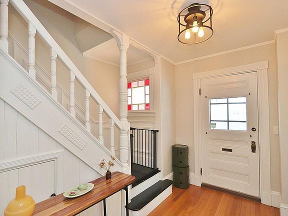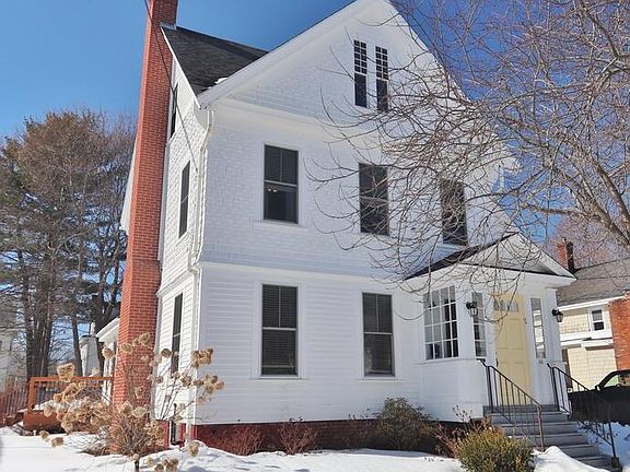 This impressive Bangor Colonial is a true showstopper, boasting a unique blend of classic charm and modern amenities. The exterior features unique shingle siding, a custom brick chimney, a glassed-in portico, a wrap-around deck, and a three-season sun porch, creating a lasting first impression. Inside, you will discover a world of elegance and sophistication, complete with coffered ceilings, French doors, wood floors, millwork, and stained glass windows. The double room offers endless possibilities for a living and dining room, while the cozy den features a half bath, and the renovated kitchen boasts stainless steel appliances, quartz and wood countertops, and a walk-in pantry. The upstairs accommodations include a spacious primary bedroom with double closets, two additional bedrooms, and laundry facilities with built-in cabinets and drawers. The third floor offers two rooms that could be restored, providing additional storage space. The basement features spray foam insulation, updated electrical systems, and a hot water boiler. The windows have been replaced with modern, efficient, double-hung style. The partially fenced backyard features a play set and shed. Located on Maple Street, one of Bangor's most desirable neighborhoods.