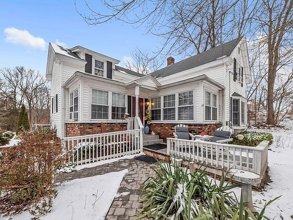 If you want charm and character this tastefully decorated colonial home is the one you have been waiting for! Situated nicely on a 1.58-acre lot with stone walkways, lush landscaping, a 20'x20' 2-story outbuilding that is heated by a wood stove and a 2-car detached garage. The enclosed wraparound sun porch is warm and inviting, the country kitchen offers lots of cabinets and counter space, a custom-built breakfast bar with brick feature and a custom-built desk. The sun filled dining room has a lovely bay window, French doors and access to the large private deck. The focal point and heart of the home is the beautiful stone fireplace with Harmon wood pellet stove located in the large, comfortable living room with built in hutch and entertainment center. The den/office is currently being used as a 1st floor bedroom with a window seat, built ins & a closet. The 2nd floor offers 3 bedrooms, a full bathroom, large walk-in closet/storage area. Highest & Best Offers by Wednesday @ 12pm.