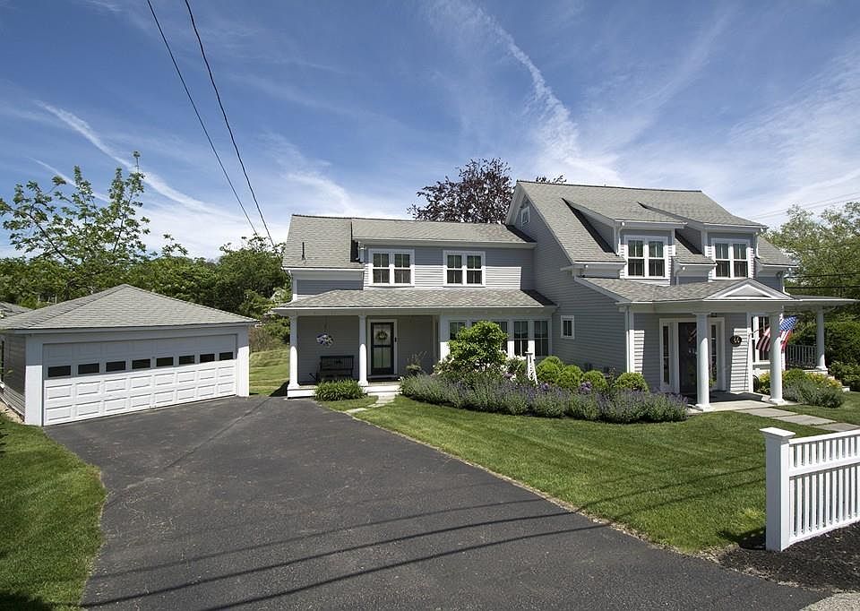 This privet hedged Harborside Classic with a wrap around porch and views of the yacht club and Bassings Beach captures salt air, sea breezes and water views in every room. Exuding the look of coastal living, elegant in every detail, yet comfortably casual, this home is essentially brand new construction inside and out, with an over-the-top kitchen and luxurious bathrooms. With architectural interest in every room, the sophisticated, understated living spaces are defined but open to one another, allowing family and friends to open French doors and gather on wide rocking chair porches and pergola - covered decks shaded by a stately copper beech. An amazing home and aesthetic with the added pleasure of having the activity of town and the harbor at your doorstep ... A Coastal Living Gem !!!