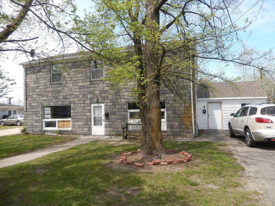 Duplex unit. Second floor apartment rented for $600/month, first floor needs renovation, Kit,LR,BR,1 ba. large fireplace. Both HVAC systems (heat pumps) new in 2011, roof new 2010. Large storage shed at rear rented for $50/month. Second floor apartment has 3 bdr 2 baths, LR, Kit, 1st floor entrance with utility room on first floor.