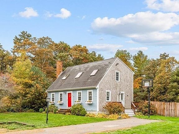 Tucked away on a side street in a highly sought after neighborhood, sits an adorable 3 BR/2BTH Cape style home! Walking into this home you will see a sundrenched LR with gleaming hardwoods, custom shelves, cozy fireplace & slider leading to an oversized deck. The remodeled kitchen features maple cabinets, granite countertops and island for extra workspace. The dining area has hardwood floors and plenty of windows for natural light. Upstairs are 3 bedrooms including a generously sized, bright & crisp primary bedroom. The partially finished lower level offers a great space to hang out. The basement and outdoor shed offer ample storage. This home has been meticulously maintained with newer windows, new carpet & recently refinished hardwood floors. The large fenced yard offers plenty of room for gatherings. Enjoy chilly nights sitting by the firepit or spend time puttering in the garden. All of this sits on1.5 acres of land, which lends itself to the opportunity for future expansion