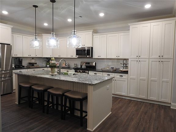 Charming 2 bedroom 2 bath Townhome in Camelot , Open concept, one level, with Vaulted Ceiling in the Great Room, gas fireplace, LVP floors, Tile floors in bathrooms and laundry. Large kitchen with stainless steel appliances, beautiful island, granite counter tops, subway tile backsplash, plenty of storage, Primary suite with large zero entry shower, double vanities, and large walk in closet, Platation shutters throughout, spray foam attic, tankless gas water heater, Out back has a covered porch with fence..