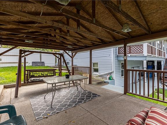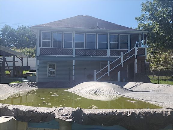 Excellent home or investment property. Stone front ranch with finished walk-out basement. Front and rear enclosed house-long porches, additional kitchen in basement could easily be 3rd bedroom, super high ceiling make everything seem more open and roomy, eat-in kitchen with slider doors to rear sunporch, patio from walkout basement to yard. The yard has a pool, shed, and covered pavilion that could be used for covered parking if you take down the front fence. Quiet street, good separation from neighbors, very convenient location. The home needs some general TLC but is very comfortably livable. AS-IS sale.