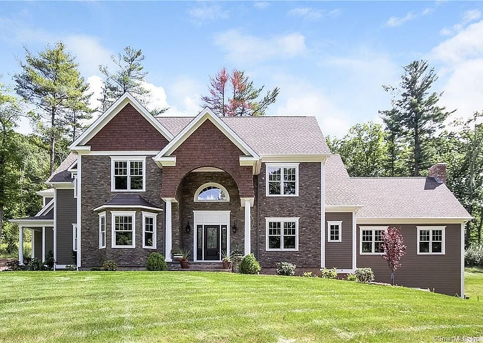 Secluded on 2+ acres in one of the most desirable areas in Farmington, your personal Estate awaits This unique home was meticulously designed immaculate attention to detail & emphasis on luxury to accommodate today's modern society. An innovative traditional & contemporary fusion within the home's floor plan offers an elegance like no other. The impressive grand foyer crystal lighting & incredible millwork welcomes you. The gleaming maple hardwood floors are matched with expansive hallways leading to every room. A chef's dream kitchen showcases an impressively extensive marble island high-end appliances including Sub-Zero fridge, Wolf stovetop, dual ovens, a pot filler, multiple wine chillers & a butler's pantry The inviting open floor plan let's one wander to the warm & sophisticated family room & to the elegant-formal living room floating beams & crystal lighting where one can bask in the sunlight while enjoying the scenic outdoors. The wide upstairs' hallways lead to four well appointed bedrooms their own baths. The impeccable Master Suite offers coffered ceilings, rope lighting & seating area with a gas fireplace. You will no doubt be enamored by the impressive European Spa crystal lighting & a soaking tub. The finished walkout LL a rustic & authentic brick fireplace, bar, media room & a full bath is added space for social gatherings. The enticing outdoor veranda invites you to unwind & enjoy the serene outdoors by the fire. Min to I-84 & local hospitals.