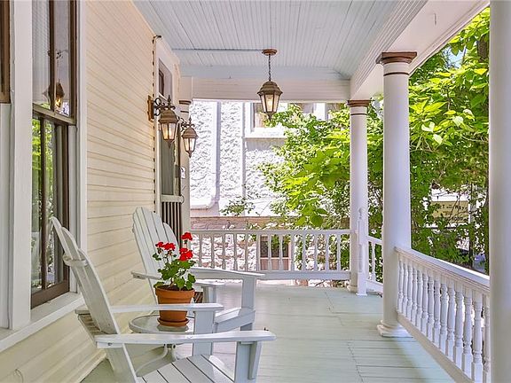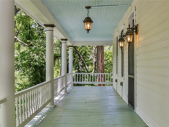 Beautiful new exterior paint, wood replacement and window repair (inside and out). Spacious turn of the century, 3 level house with wide porches all around. Sought after location just up the hill from downtown. Interior has an artistic flair with many chandeliers, high ceilings, intricate refinished hardwoods, granite counter tops and marble baths. Three zones of central heat and air. Roof was replaced in late 2018. A spacious, two room apartment downstairs has hardwoods, vintage kitchen, large bath and it has it's own separate outside entrance. The apartment currently rents for $600 a month, but could bring more. Very large, flat side lot included with house, as well as 4 lots behind the house. The side lot is one of the few left in the historical district and would make a fantastic site for a new house, or two new houses. Worth at least $50,000.