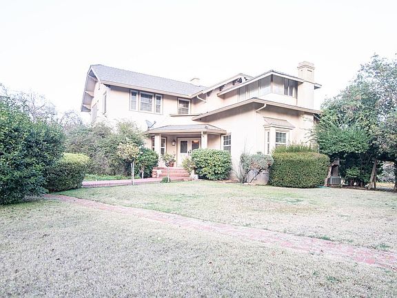 This is one of a kind...Gorgeous home sits on .89 acres overlooking the golf course and park, along with a view of the Sierra Nevada mountains. This home is over 3100 sq ft. 5 bedrooms, 3 1/2 bath, large living room with fireplace, crown molding in almost every room, arch doorways, formal dining area with built ins from the era this home was built but went through an extensive remodeling that include dual pane windows through out, granite counter tops, built in appliances, wet bar. One bedroom with on suite bathroom is downstairs and 4 bedroom upstairs with a viewing room or artist room above this floor. There is a guest house with full bath and kitchenette, along with a little house with bathroom. Gated entry with circular drive.A gorgeous double door entry to the large foyer, and the tour begins...Call Today!