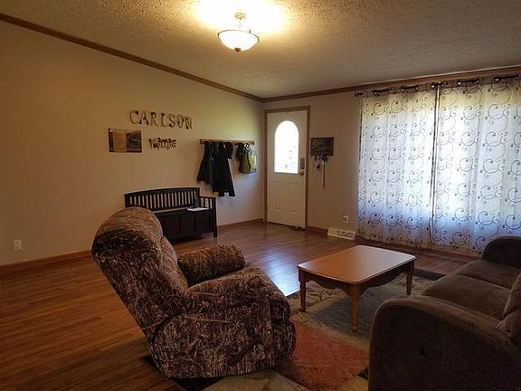 Great home! Enter into the first living room area with vaulted ceilings. Enjoy the open concept kitchen with amazing island and buffet counter with tons of storage. Home boasts a second LARGE living area with vaulted ceilings. Home was updated with laminate floors throughout within the last 2 years! Large master bedroom with walk in closet and master bath with a shower and soaking tub. Den area off the master bedroom is ideal for work or a nursery area! This home is well kept with an additional 3 bedrooms and 2 more full baths! Back yard has a 12x18 deck and a 12x20 shed. Home has insulated skirting. This is a MUST SEE home in Washburn! Call your favorite REALTOR FOR A PRIVATE SHOWING!