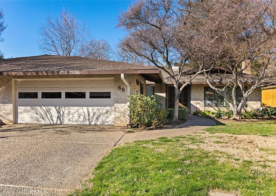 This lovely 2 bedroom, 2 bath condo with approximately 1,776 sq. ft. of living space (infamous Dogwood plan) and 2 car garage, is tucked in a PRIME location in the desirable Northwood Commons neighborhood. This wonderful neighborhood features large mature shade trees and landscape presenting an attractive parklike setting. From the moment you enter, appreciate the warm & inviting floorplan that it offers along with that comfy and cozy feeling of home sweet home. The living room is spacious and features a formal dining area vaulted ceilings with beautiful wood beams, eye-catching windows bringing the outside in, along with an attractive brick hearth/gas fireplace for those cold winter nights. Highlights include: a delightful kitchen w/ white cabinetry & tile counter tops, dishwasher, trash compactor, microwave, refrigerator, natural gas range and large dining nook area off the kitchen, separate office/den with built-in desk & cabinets, beautiful wood laminate flooring in the entry, hall, office/den, kitchen and nook, the master bedroom is spacious and has a large walk-in closet, custom built-ins, there is ample storage throughout, large covered patio, updated windows and newer HVAC unit. Enjoy the wonderful onsite amenities this development offers: Clubhouse, large swimming pool and hot tub, tennis, pickle ball and Bocce ball courts. HOA dues provide landscaping maintenance, water, trash, septic, exterior maintenance of roof and doors. As an added bonus, this condo is conveniently located near shopping, restaurants, coffee shops and just minutes to downtown Chico.