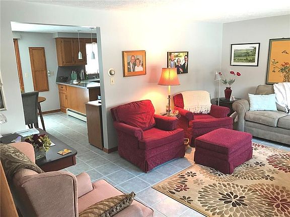 Bright & sunny end unit offers an updated, fully applianced kitchen w/oak cabinets, Corian countertops, tile flooring & a French door leading out to large deck that overlooks a nice level yard w/a treed border in back. Enjoy one level living at its best w/a huge master bedroom, full bath, bedroom/office, 1st flr laundry & 2-car garage. Insulated full basement has sheetrock & heat for future expansion or dry storage. Home is also Hardwired w/Gen Tran, central vac & separate hot water heater for summer months!