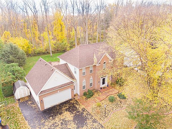 This EXCEPTIONAL-TURN KEY Colonial backs to the forever wild w/ a resort style outdoor living area w/red brick paver patio & walkways,hiking trail,deck space & built in firepit! This home has it all! Dining room w/tray ceiling leads to the kitchen w/granite countertops,Kenmore Elite SS Appliances! Sunroom off the Kitchen area to sit & enjoy your coffee all year w/gas FP. Family room has Gas FB w/ French Pocket doors leading to the living room which also has a Gas FB & built-ins. 4 ample sized bedrooms, Master Bedroom Suite w/walk-in closet! You have the option of 2nd floor laundry or basement laundry! Main bath has a sit down Jacuzzi tub,tile & granite vanity. The basement is finished with walk up stairs leading to the 2.5 Car garage,turn the space into whatever your needs/wants,w/full bath & 3 large rooms,laundry hook ups & hopper sink. Retractable Awning,2 Sheds,Epoxy Garage Floors,Lifestyle Retractable Screen on Garage door,Liberty Sump Pump,TOO MUCH TO LIST!