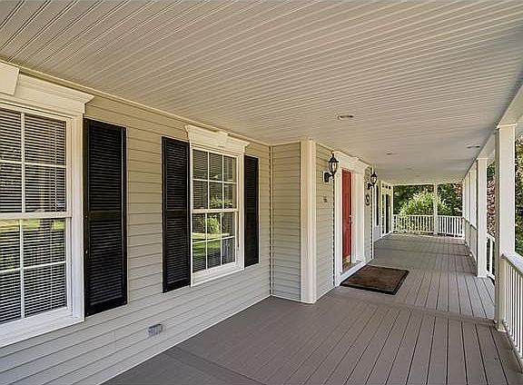 Stunning Farmhouse Colonial w/hip roof at the end of Cul de Sac. Great commuter location, close to I-84, located in the Region 15 school system. Walking distance to Pomperaug High School. Freshly painted inside and fresh hardwood flooring throughout. Open concept kitchen with granite leads to 700 SF main level great room with vaulted ceilings, hardwood floors, and gas fireplace. Formal DR leads thru French Door to 4 seasons sunroom and oversized wrap around porch, with maintenance free composite and vinyl. All bedrooms boast hardwood floors. Master BR has tray ceiling, generous walk in closet, and luxurious bath with whirlpool, cherry vanity and granite top. Over 2 3/4 acres with so many possibilities. Don't forget central vacuum system.
