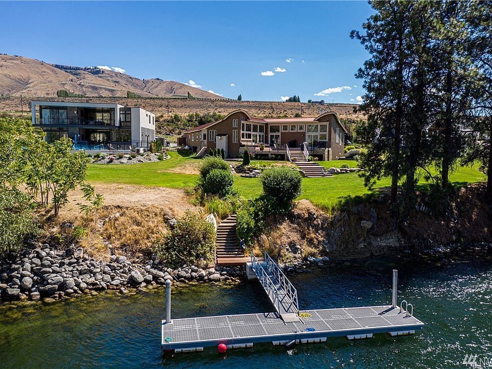 Custom Build and a very rare offering in very popular neighborhood of Twin W on the Columbia River. One of the largest lots in the neighborhood with almost 1.4 Acres and 105' of private waterfront. Shared dock installed. 3 bedrooms plus a sleeping den and 2.5 baths with an open floorplan for entertaining. Generous deck space to soak up the panoramic views of Lake Entiat. 3 Bay garage for all of your toys and room to build an additional shop/ guest quarters and sport's court. Vac. Rental OK