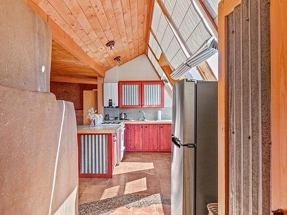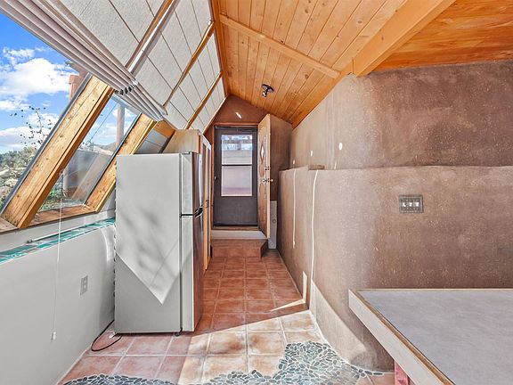 Small is beautiful! This residential property which originally was a house and guesthouse has now been turned into two stand alone condos. The common ground is two acres but each condo has a large area for private use . The smaller studio condominium is for sale. It is an earthship style but on the grid. The open living/bedroom area connects to a very charming bathroom with good storage and lots of light. The kitchen is very sweet and functional with new appliances and good, well thought out storage space. The Condo has a large private, covered outdoor area which expands the living space. With new window coverings, the condo is freshly plastered and very charming. Small but beautiful This condo can work for a full time residence or for a weekend pied a terre. The passive solar element will keep the utility cost to a minimum. The location is private yet easy in and out to the Town of Taos or Taos Ski Valley. Come and see for yourself, this is an unusually appealing choice for simple living.