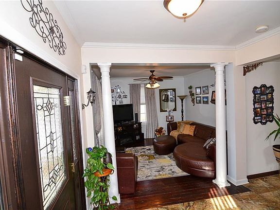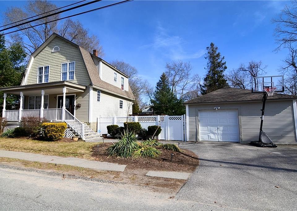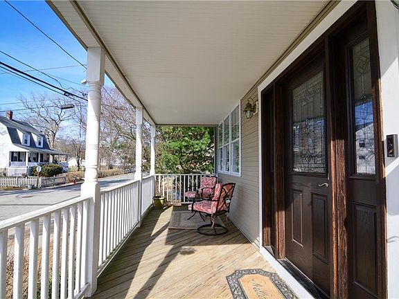 Completely updated Colonial on corner lot with a fenced 10,000sf yard. The kitchen features walnut cabinets with stainless appliances, a breakfast bar, tile backsplash and marble floor. This home has many nice details such as a tray ceiling in the kitchen, crown molding throughout the first floor, two columns that frame the living room opening, and a cozy window seat in the dining room. There are hardwood floors throughout, all new windows, a 4 year old heating and air conditioning system, and two updated bathrooms. Outside is a large two tiered deck, a fire pit, an above ground pool, and a 22ft wide front porch. The detached garage is two bays wide, but has a one car overhead door. Not far from Conimicut Beach and numerous marinas.